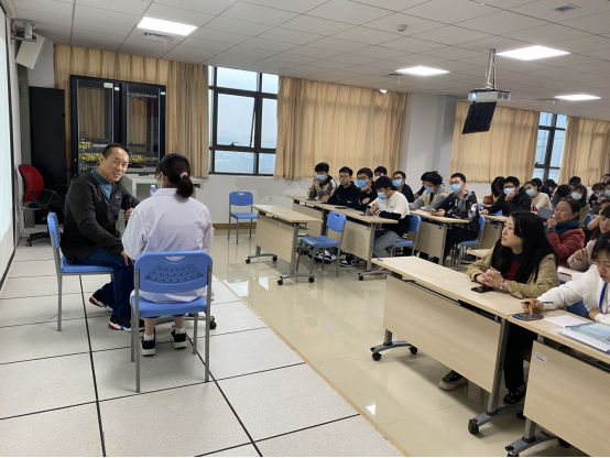 吴建生老师首先亲自担任一位“水肿和尿少”SP,邀请2018级临床医学3班季淑奇同学担任医生,考察其问诊水平及人文沟通能力。随后结合该同学的表现,详细讲解了医员工问诊教学与评估考核、客观结构化临床考试(OSCE)和综合临床能力测试等工作应用SP的要点,特别是SP的语言技巧、动作技巧、表情技巧、交流技巧,介绍了SP评分训练和整合训练,强调了SP的案例“故事”主线不可更改,关键信息不可更改,考核要点不可更改。