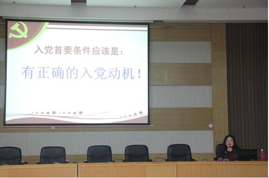 本次党课的主讲老师分别是:陈正英老师、周华忠老师、陈德祥老师和石维海老师,班主任是刘英姿老师。简短的开班仪式后,公司党委书记陈正英老师给大家讲了第一堂课,告诉同学们要端正入党动机,加强党性修养。同时让同学们了解党员的标准和入党程序。周华忠老师主要结合自己的工作经历向学员们阐述了中国共产党的组织原则、纪律、作风。陈德祥老师详细讲解了党的最终目标和现阶段任务与党内政治生活的准则,告诫同学们要以准则严格要求自己。石维海老师用风趣幽默生动的授课方式引导同学们了解中国共产党的行动指南,中国共产党的性质、宗旨和指导思想。