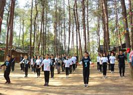 图为美美哒的工间操现场 图为员工素质拓展活动现场