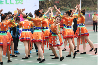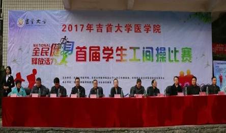 首先是王元老师致欢迎词,比赛正式开始。14级针推二班的土家族服装和土家族舞蹈让人印象深刻。他们在原有工间操的基础上加入大鼓表演,和舞蹈相结合,鼓点配合相应成彰,整齐的动作,变换的队形,使人耳目一新。比赛过半,预科生为我们带来苗鼓表演,苗鼓是湘西苗族别具一格的文化,花样众多。气势磅礴、振奋人心的鼓声与我们场上的氛围相称,令人激动。17级针推班摆出心形阵型,改编了动作,加入了风趣活泼的元素,小鸡和小猫的发饰,再配合他们的服装,独具一格。参赛人员不仅仅员工,老师也参与了进来,活力十足,每支队伍都赛出了自己的风采!