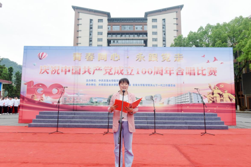 王艳在比赛开始前的致辞中肯定了此次活动的意义与价值——是推动党史学习教育的一种生动方式,千余名学子将用自己的青春之声,让一曲曲历久弥新的红色经典歌曲唱响校园,缅怀党的历程,追忆峥嵘岁月,赓续红色基因。她要求全体医员工增强历史意识,深刻地理解“中国共产党为什么能,马克思主义为什么行,中国特色社会主义为什么好”,进一步涵养医学情怀,坚定报国之心。并希望同学们能深刻领悟中国共产党在领导抗击疫情中坚持“人民至上,生命至上”的理念,要在红色歌曲传唱,党史学习教育过程中,感受前辈们的奉献精神;在未来的工作中,践行“健康所系,性命相托”的医学初心,努力为新时代的中国卫生健康事业添砖加瓦,贡献自己的力量。