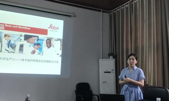首先,Bio-RAD公司的技术人员罗艳给大家介绍了PCR技术的原理、发展历程、各代技术的优缺点以及微滴式数字PCR技术的具体应用和案例;其次,Leica公司的卢林芳介绍徕卡病理全流程解决方案,从组织标本的采集和运送、取材、标本识别,冰冻切片、组织脱水、包埋、蜡切片、常规染色,到IHC和ISH高端染色、染色/盖片工作站等进行了详细介绍;再次,Molecular Devices公司的刘虓给大家介绍了酶标仪的发展以及分类、原理,多功能酶标仪在FRET、荧光素酶报告基因、激酶检测等方面的应用和小动物活体成像技术的原理以应用;最后,Molecular Devices公司的朱丽娜介绍了水质对PCR结果的影响。