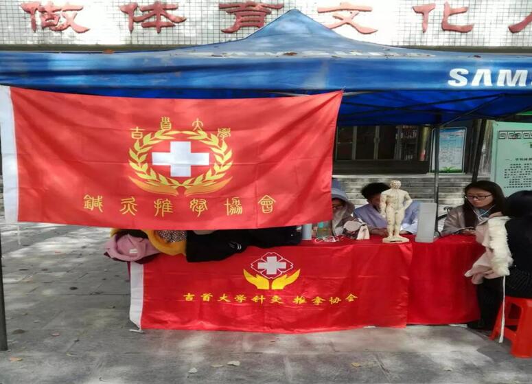 本网讯(马清)2017年3月26日,针灸推拿协会在砂子坳校区体育场前坪举办以“你的疼痛我的行动,你的健康我的荣光”为主题的“学雷锋”义诊活动。本次活动是由球友会主办,球友会团组织员工会承办,针灸推拿协会协办,活动义诊人员主要为40名14级针灸推拿1班员工。在活动开始之前,协会志愿者就活动分组及注意事项进行了安排,李莉华老师也对义诊人员进行了工作安排方面的指导,确保活动有序进行。全体工作人员带着满腔热情,进行以推拿保健为主,艾灸、测血压、贴耳穴为辅的义诊活动,希望运用自己所学的针灸推拿和医学基础知识为全校师生及家属进行健康保健,发扬雷锋精神。