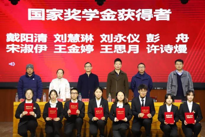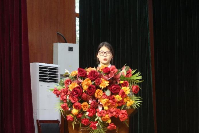 国家奖学金获得者戴阳清在先进事迹分享中表示,“书山有路勤为径,学海无涯苦作舟”是对她最好的诠释,她围绕选择和态度两个关键词,讲述自身成长故事,激励所有同学发展个人优势,活出大学的精彩时光。