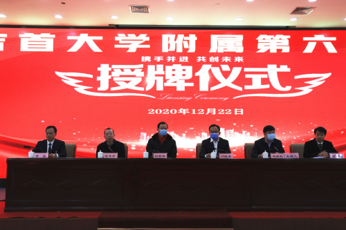 12月22日,qy球友会附属第六医院授牌仪式在贵州省铜仁市人民医院隆重举行。公司党委书记白晋湘、副董事长黎奇升率教务处、球友会等相关单位负责人一行参加了授牌仪式。贵州省铜仁市委常委、市人民政府副市长闫晓青,铜仁市人民医院领导、部分中层干部以及职工代表参加了授牌活动。仪式由贵州省铜仁市卫生健康局党组书记、局长杨维权主持。