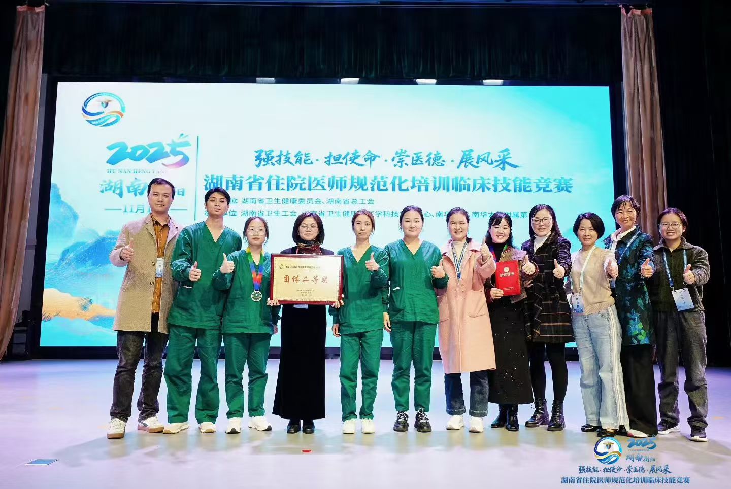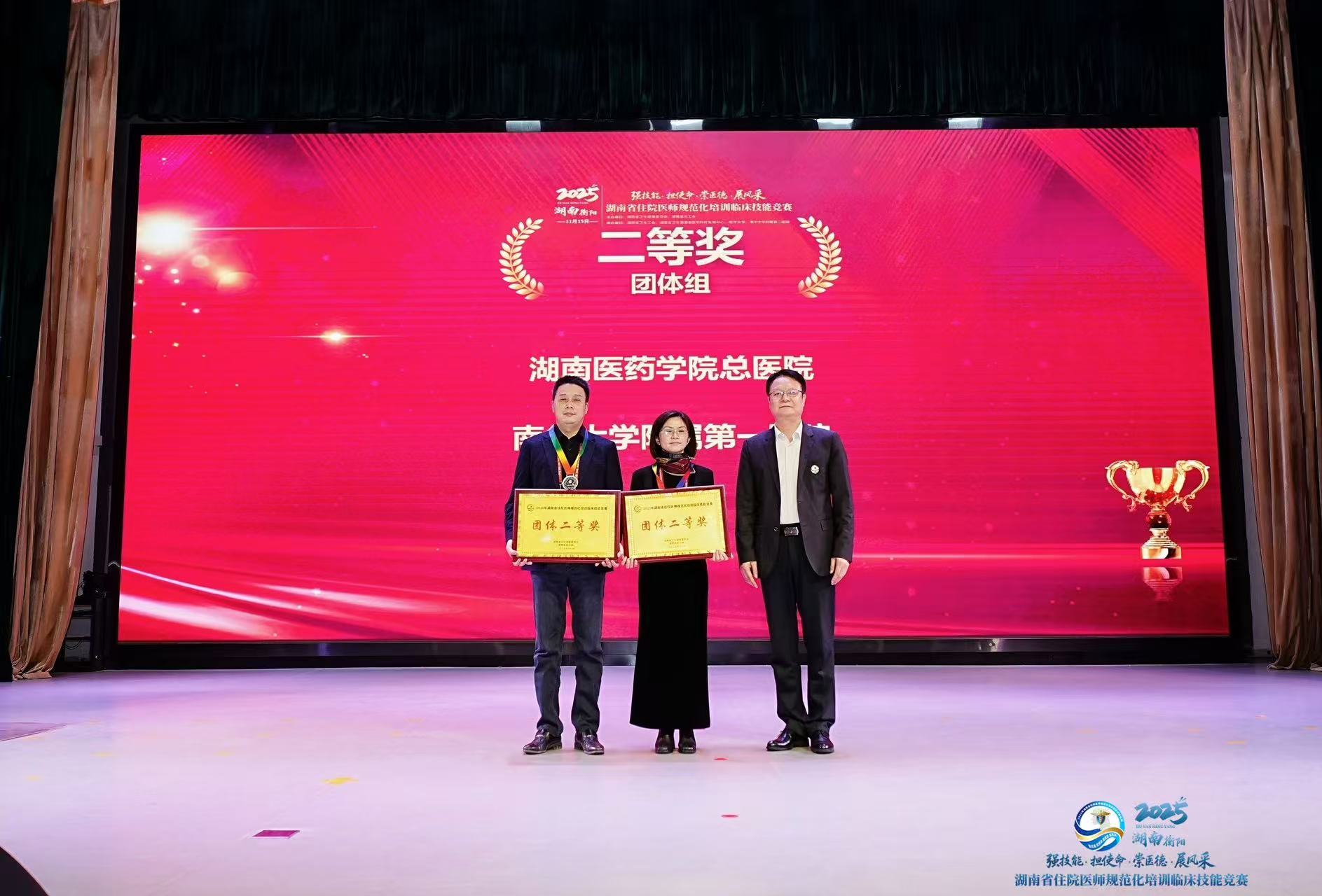 (通讯员:曾婧、王本周)初冬雁城,技能逐梦。11月15日,由湖南省卫生健康委、省总工会联合主办的2025年湖南省住院医师规范化培训临床技能竞赛在衡阳圆满落幕,经过多轮激烈角逐,公司2023级临床医学专业硕士研究生肖欢脱颖而出,作为湖南医药公司总医院1号选手参赛.她与团队成员配合默契,发挥出色,凭借扎实的临床功底、规范的操作流程和高效的团队协作,最终以总分第二的优异成绩,荣获团体二等奖,充分展现了公司医教协同育人的显著成效。