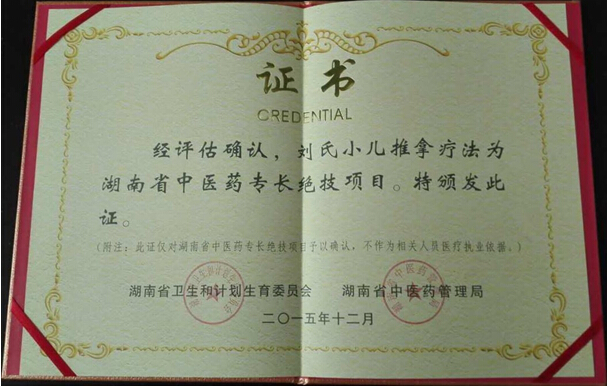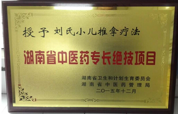 “刘氏小儿推拿疗法”被授予湖南省第一批中医药专长绝技项目
