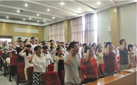 (张程)为迎接中国共产党成立九十五周年华诞,全面推进公司“两学一做”教育实施工作。6月13日中午,公司在大田湾校区多功能报告厅召开了以“牢记入党誓词、践行‘两学一做’、争做合格党员”为主题的党员宣誓大会。参会的有公司党委书记陈正英、副书记王元、副经理向志钢、秧茂盛、院办主任李继红及全院教师、员工党员、入党积极分子。大会由王元主持。