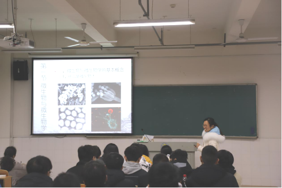 龙先琼一行采取随堂检查的方式,提前15分钟来到教学楼2505教室,与2019级临床医学9班的同学一起听取公司马康康老师的《病原生物学》理论课。