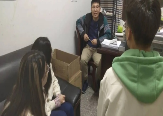 侯娟老师在第三教学楼办公室对同学们进行思想上的引导