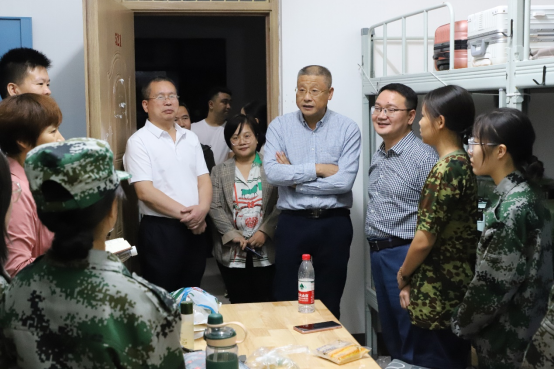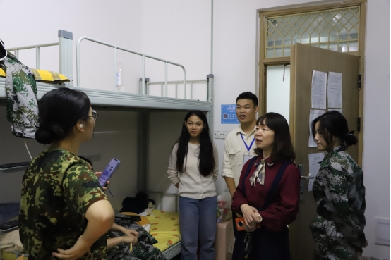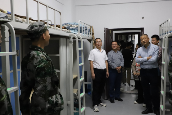 (图为公司领导老师走访大田湾校区新生宿舍)
