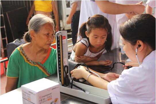 7月11日上午,河溪镇达到今年入夏以来最高温,“大医精诚”基层医疗服务团队不顾酷暑,将义诊活动放在河溪镇文化广场进行。义诊体检的项目主要有测血压,推拿按摩等。义诊开始,现场人头攒动,秩序井然。前来检查和咨询的村民络绎不绝,多数老年人咨询了糖尿病、高血压、风湿病等常见病症的预防和治疗方式。志愿者们耐心解答、熟练操作,并运用所学医学知识,提醒居民注重饮食健康,保持劳逸结合的生活作息方式。此次义诊活动,受到了乡亲们的一致认可和高度赞扬。