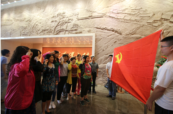 在遵义会议纪念馆大厅,公司党委书记陈正英带领党员同志面向党旗进行庄严宣誓。通过重温入党誓词,使大家心灵得到又一次洗礼,庄严场面、催人奋进,大家纷纷表示:要珍惜幸福生活,反腐倡廉,立足本职,坚定信念,勇往直前。