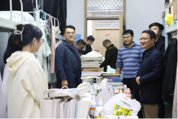 (图为领导老师走访女生宿舍)