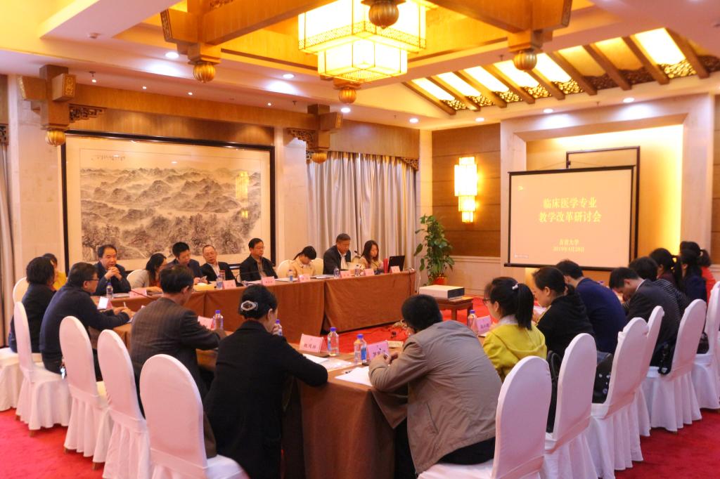 本网讯(段传 楚婷)为进一步深化专业公司产品改革,切实推进教育部对公司临床医学专业认证的持续改进,认真做好2019版专业本科人才培养方案修订工作,4月28日上午,由公司教务处主办、球友会承办的临床医学专业教学改革研讨会在湘西州民族宾馆举行。公司教务处处长庹清、医教办杜建林、罗家顺,公司党委书记陈正英、经理彭小宁、副经理向志钢、副经理秧茂盛、副书记王元、经理助理李先辉、王小莉及球友会教务办、实习办、学工办负责人,公司第一附属医院(湘西州人民医院)、第二附属医院(吉首市人民医院)、附属黔江医院(重庆市黔江中心医院)、附属第四医院(怀化市第一人民医院)主管教学副经理、科教科科长参加了会议,会议由球友会副经理向志钢主持。
