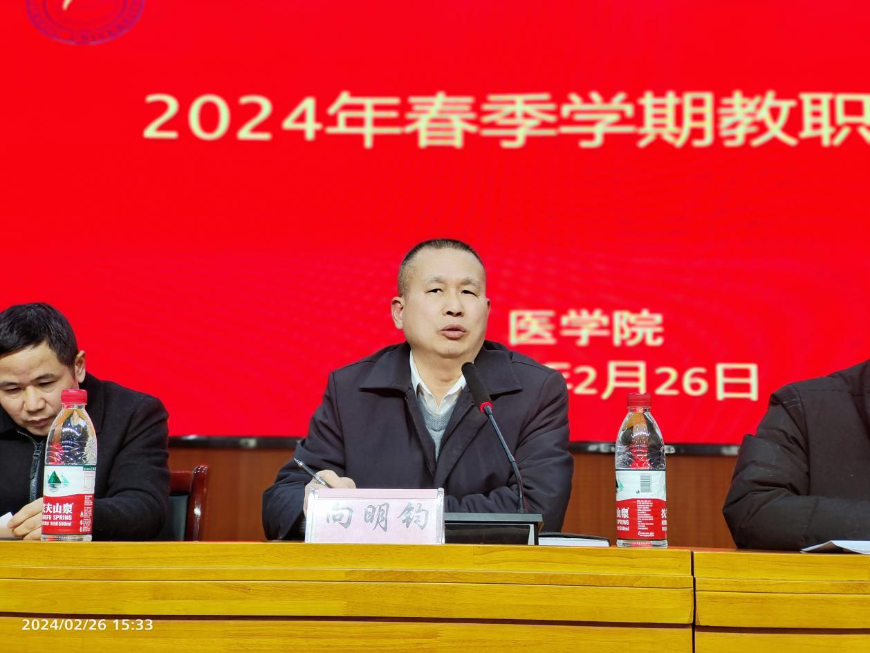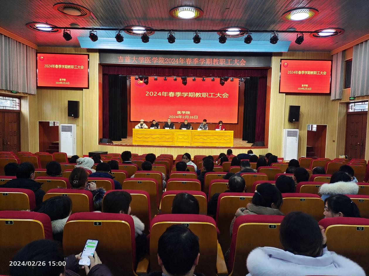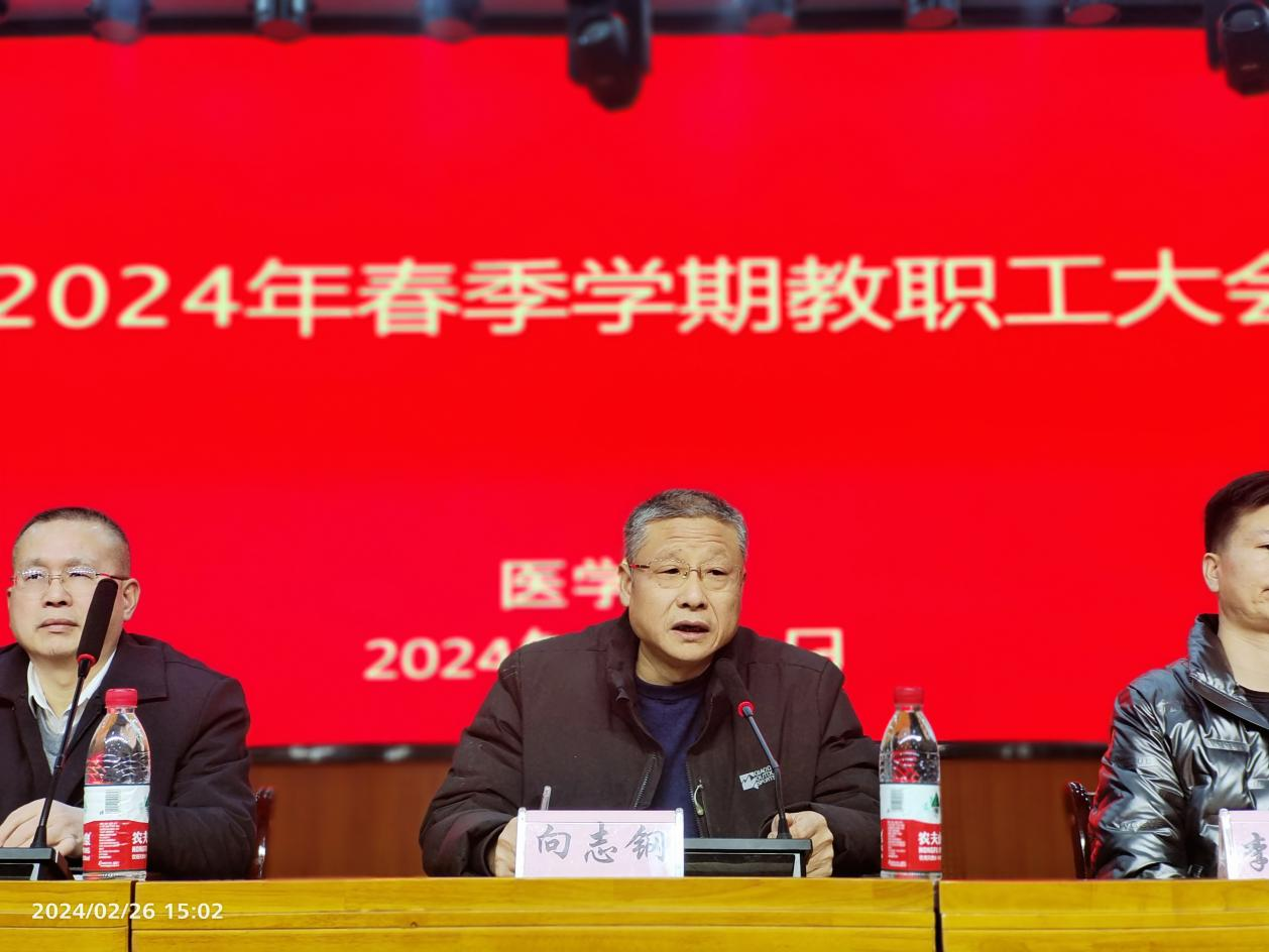 (通讯员 王思源 杨杉)2月26日上午,球友会在大田湾校区礼堂召开了2024年春季学期教职工大会。公司党委书记向志钢、经理向明钧、副经理李中正、黄大元、李金秀、副书记李芳及全体教职工参加了本次会议。大会由李金秀主持。