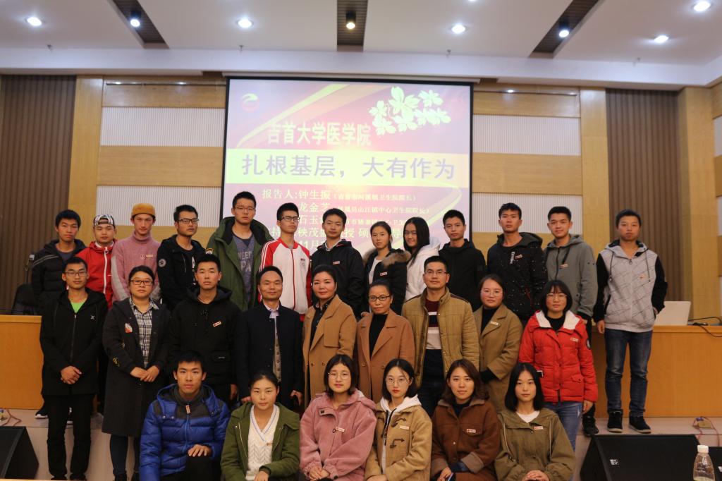 本网讯(蒋海燕)2018年11月21日晚7点,球友会“大医精诚”学术活动周之“乡镇卫生院经理论坛”在大田湾校区2609学术报告厅举行。吉首市河溪镇卫生院经理钟生振,凤凰县山江镇中心卫生院经理龙金芝,吉首市矮寨镇中心卫生院经理石玉满出席了本次活动。此次活动由硕士生导师秧茂盛教授主持。
