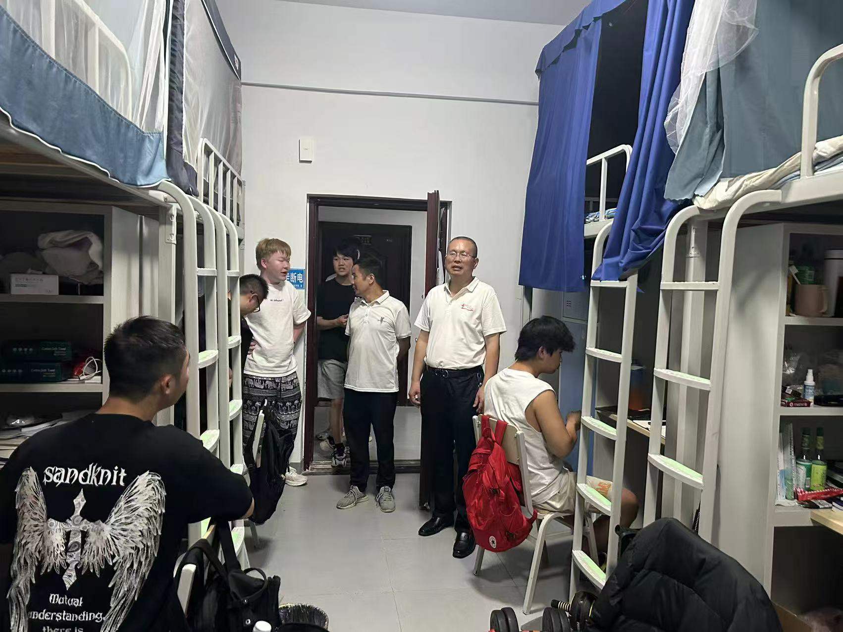 (通讯员 祖力甫哈尔·亚科甫 王晨晨)为充分了解员工新学期思想动态及排查各类安全问题,督促同学们积极调整状态,迎接新学期的挑战。9月1日晚,公司党委书记向志钢、经理向明钧率领公司领导班子、辅导员和班主任共同来到大田湾校区、乾州校区员工宿舍走访慰问。