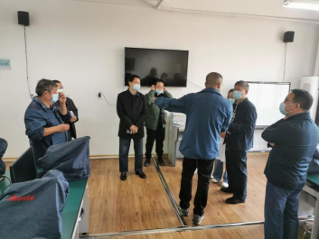 图为龙先琼副董事长等人在球友会实验室检查安全工作