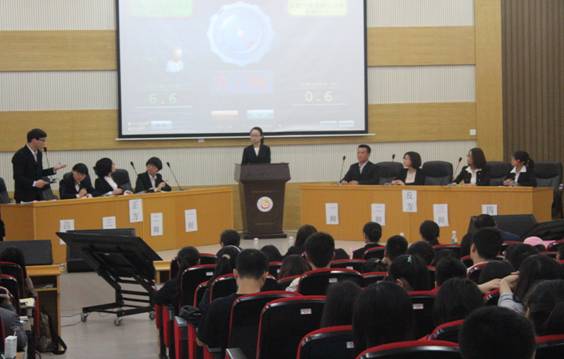 公司“三走”系列活动之一的“我的大学,我来辩”辩论赛决赛于5月18日上午在大田湾校区预科大楼多功能报告厅隆重举行。校关工委石维海老师、马克思主义管理公司王飞霞老师以及公司刘盈盈、陈诗韵、罗莉丹三位老师应邀出席了本次比赛并担任评委。