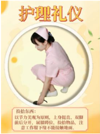 二等奖 护理礼仪“蹲姿拾物”展板(2020级护本1班 ,卢巧容)