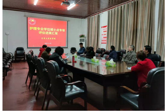 护理系主任李金秀分别就学位点专项评估报告、专项评估工作进展情况、自评材料准备情况、存在问题及下一步工作计划等内容进行汇报,包含了学位授权点基本情况,如基地实践、团队水平、人才培养、管理体系、学位授予和培养成效等六方面的内容。随后与会人员对自评材料撰写、佐证材料准备、下一步工作安排等内容进行了交流讨论,特别是陈正英教授,凭借着丰富的专业背景和工作经验,对自评报告给予了建设性的意见。