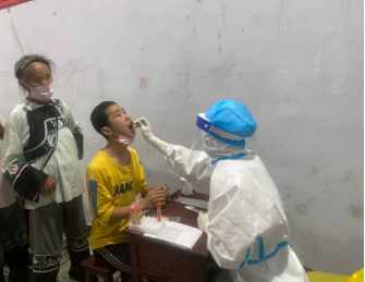 7月28日达到凤凰后,仅简单修整后就投入战斗,短短数小时,就一起采集了四千余份核算样本。7月31日刚完成凤凰县核酸采样任务的王明洋同学又立即奔赴古丈县,穿着厚厚的防护服从晚上19点一直工作到凌晨1点。完成采集任务后又迅速出发前往古丈县墨戎镇,连夜对万岩村的村民进行核酸采集工作。