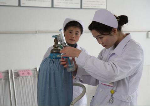 (图为护理组吸氧操作)