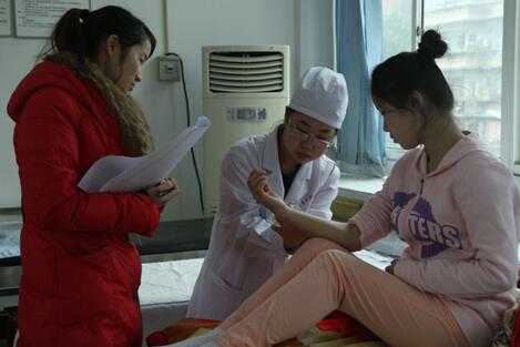 (图为标准化病人配合选手进行体格检查考核)