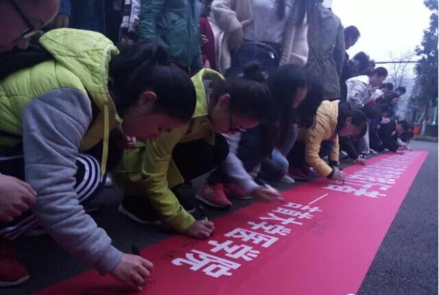 活动第二项是公司“三月学雷锋,从你我做起”活动月启动仪式的签名活动。当印有“服务校园,奉献社会,做公民道德的践行者”字样的横幅徐徐展开之后,所有的同学们大声宣读了活动口号并郑重的在横幅上签下了自己对“学雷锋”活动的真诚承诺。