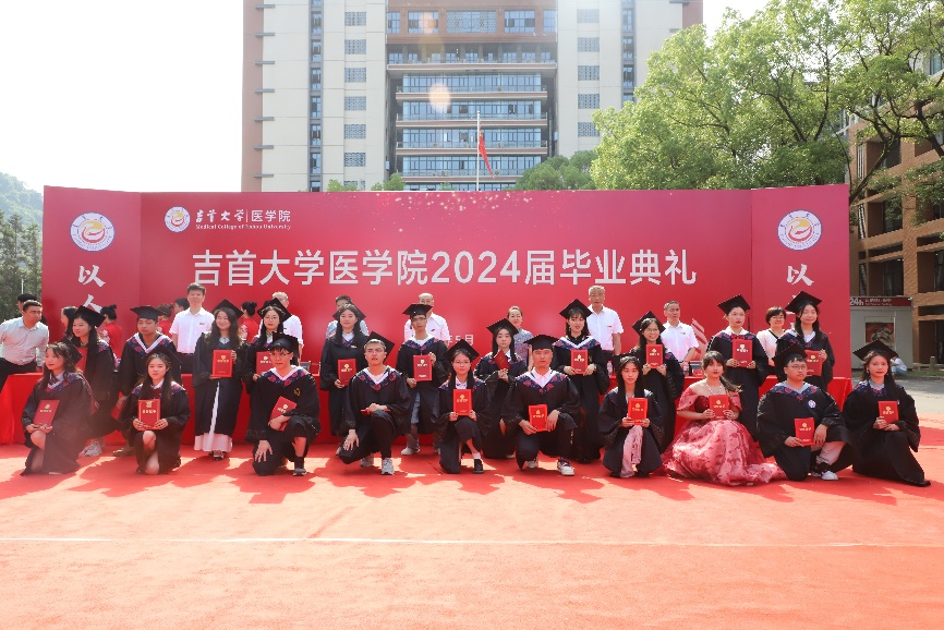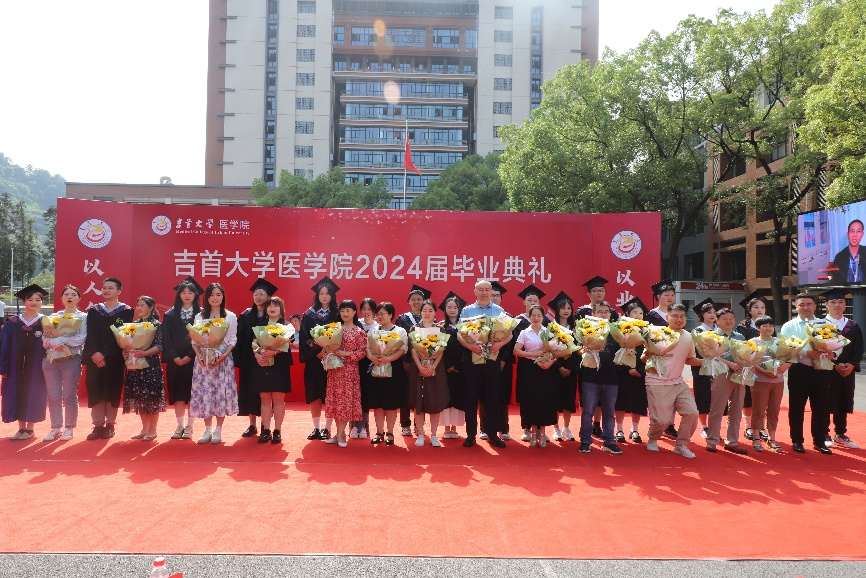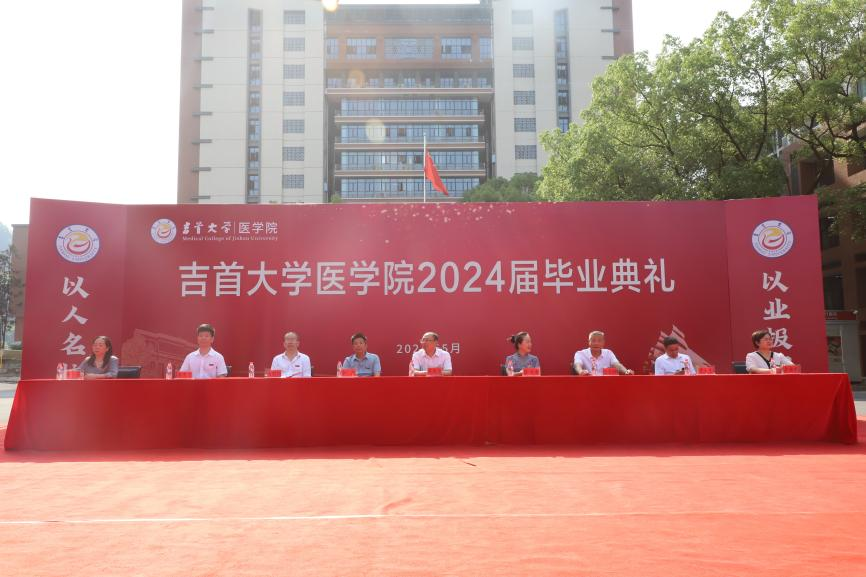 湘西州人民医院、qy球友会第一附属医院经理黄纯海,湘西州民族中医院、qy球友会附属中医医院副经理彭治香,吉首市人民医院、qy球友会第二附属医院经理李政,公司党委书记向志钢,经理向明钧,副经理黄大元、李中正、李金秀,党委副书记李芳,2024届毕业班班主任、毕业生及公司老师出席典礼。