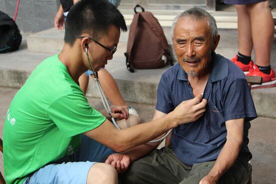 河溪的清晨是美丽的、迷人的。三、四公里的行程,两个多小时的跋涉,团队终于到达了大米田组。看到这么多志愿者的到来,村民有点茫然。当我们向村民说明来意后他们表示非常欢迎我们的到来,但看得出来他们对我们也略带戒心。“你们这个真的是免费的吗?不会看完了要我们买药什么的吧?我以前就被骗过。”一位村民这样说道。经过志愿者的耐心解说,大家对我们有了新的认识。“同学,那边有一位大爷,最近身体不舒服,家里又没个人照顾,你们去帮忙看看吧。”在村民的带领下我们来到了老爷爷的家中。这是一位85岁的空巢老爷爷,他告诉我们年轻的时候他是位赤脚医生,自己也略懂一些医术,以前生病就是自己去山上采草药,现在年纪大了眼睛看不清楚,很多药也都不认识了。家里离镇上又远,生病了很少去医院,平时鲜有人来探望,眼神里透着孤独。志愿者给老爷爷做了义诊并讲解了一些健康知识,他向我们唠起了家常,就像见到许久不见的老朋友,有说不完道不尽的话。服务队临走时老爷爷站在门前目送着我们。在他眼里透出的是一种不舍,更是一种期盼,期盼能有一个常常陪伴他的人。