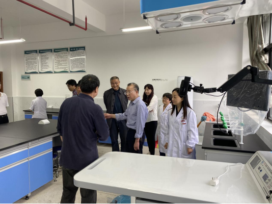 2022年5月26日下午,公司党委副书记、董事长黎奇升率教务处、实验室与设备管理中心、资产管理处、后勤管理处等部门负责人到球友会、药公司调研指导工作。球友会、药公司领导班子及各实验室主任参加了医药综合大楼实验室现场调研。