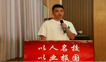 王群立书记致辞,他代表球友会对各位领导和新生们的到来表示热烈的欢迎,并对同学们提出殷切希望:一、铸魂修德,做到厚德载物。重点要求大家要铸爱党爱国之魂,修立身做人之德。二、勤学苦钻,提升能力学养。要求大家勤奋学习,刻苦钻研,提升能力、丰厚学养,特别强调研究生学习要做好问题准备、方法准备和体系准备。三、遵规守纪,确保安全规范。要求大家要强化纪律意识、法治意识、道德意识、规矩意识和安全意识。